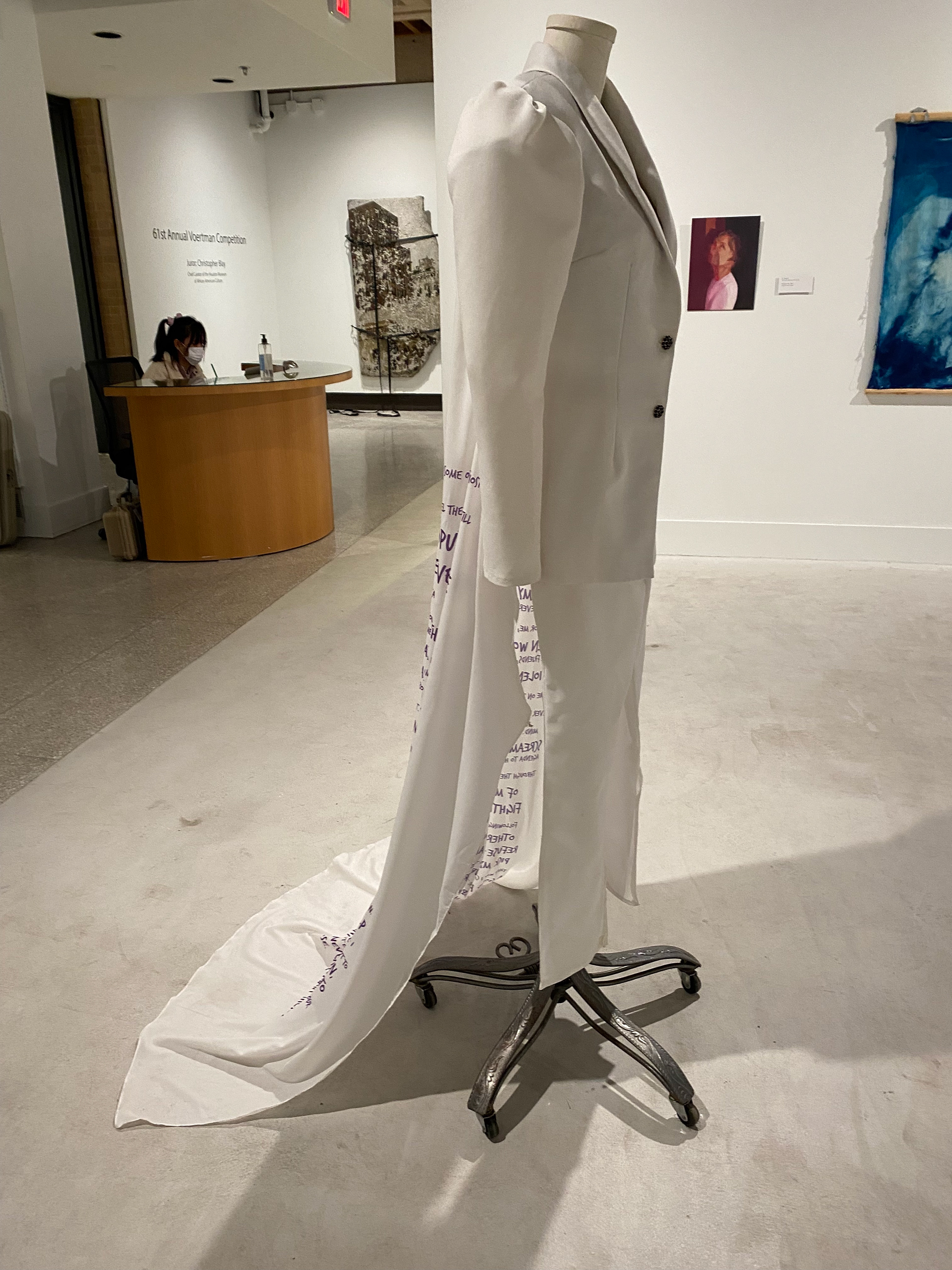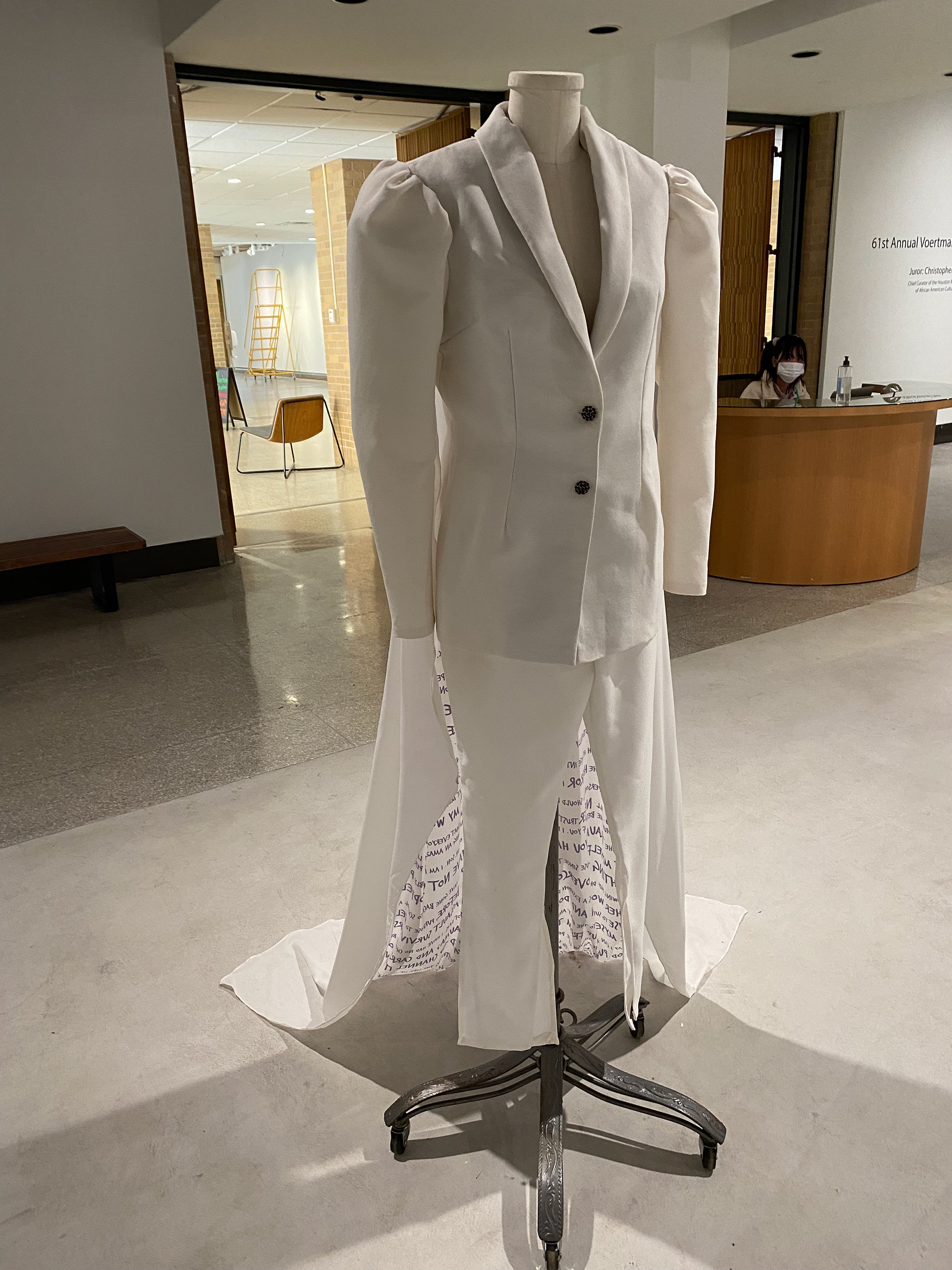 The "Rise Up Suit" was chosen by juror Christopher Blay. Blay is the Chief Curator for the Houston Museum of African American Culture. This exhibit was shown in February 2022 in the UNT CVAD Cora Stafford Gallery.
