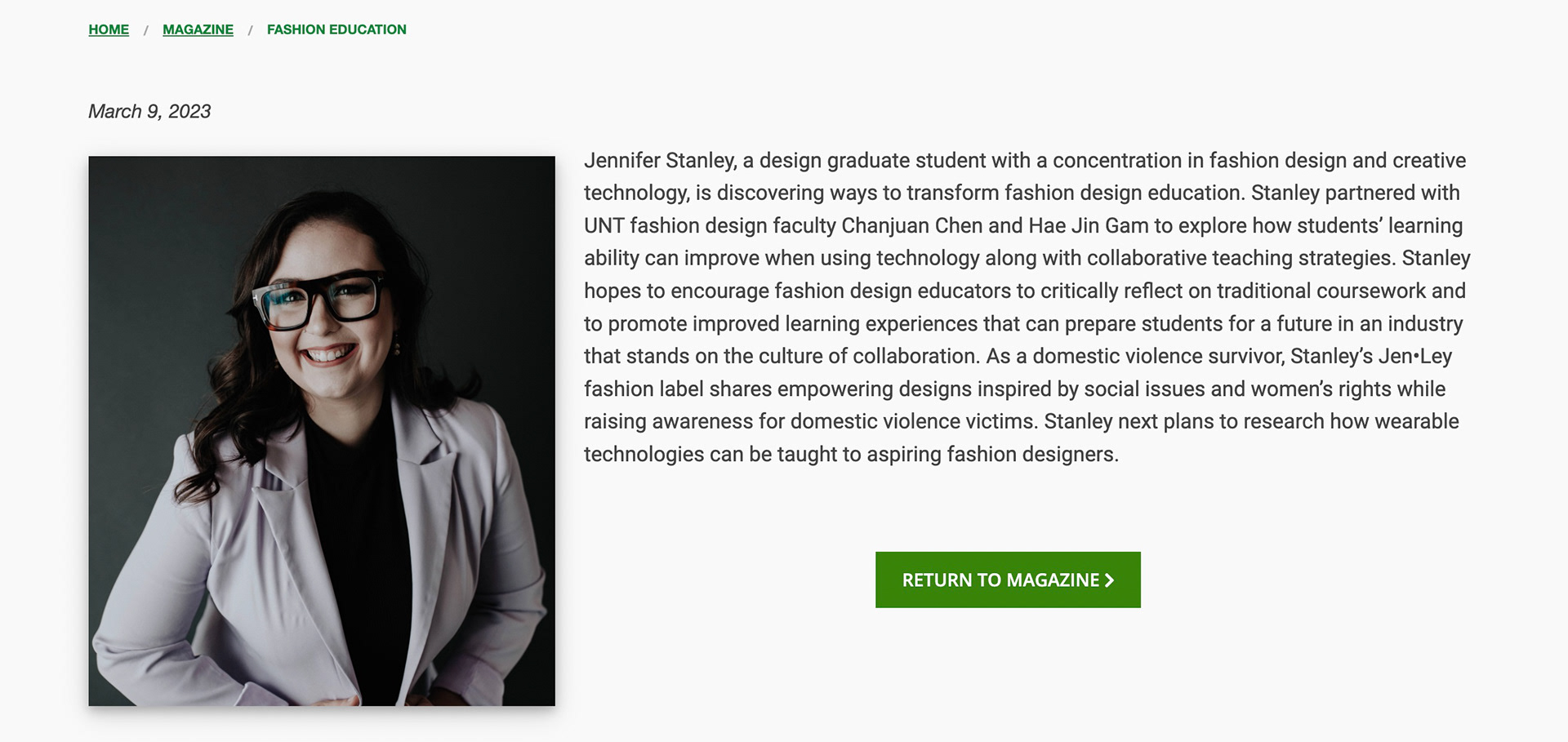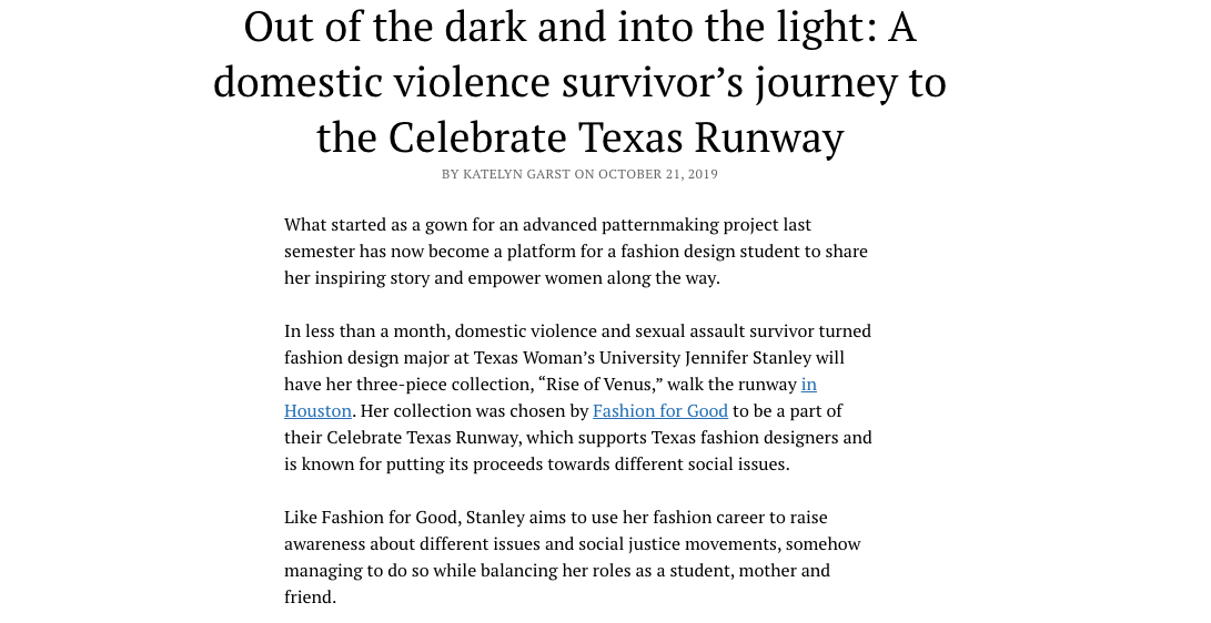 jen●ley featured in TWU Chancellor's Newsletter November 2019